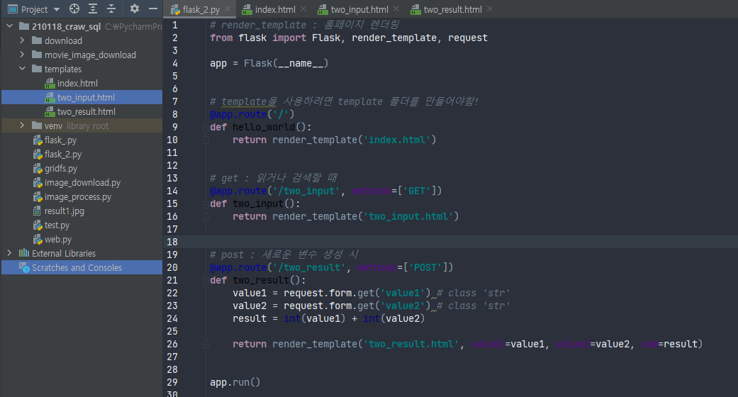 | 웹 프레임워크 Flask - 2 (0) | 2021.01.28 |