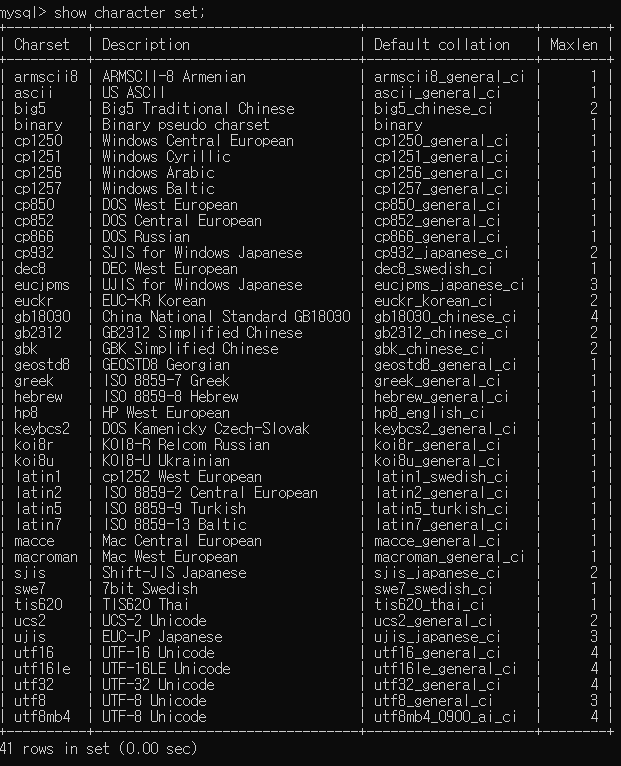 ※ character set 확인 및 변경 https://bstar36.tistory.com/307