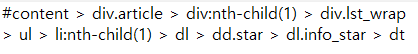netizen = item.select('dl > dd.star > dl.info_star > dt')[0].text