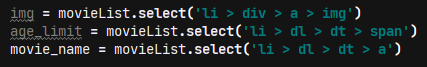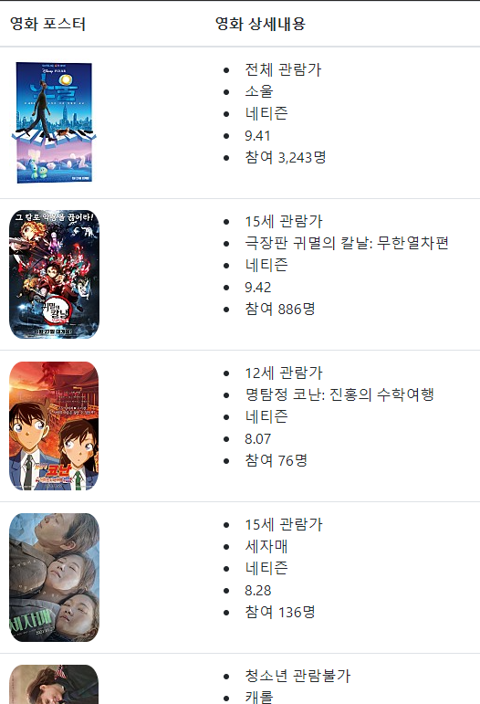 #movie_list.append([img_src, age, movie_name, netizen, netizen_num, actor_list, directer])